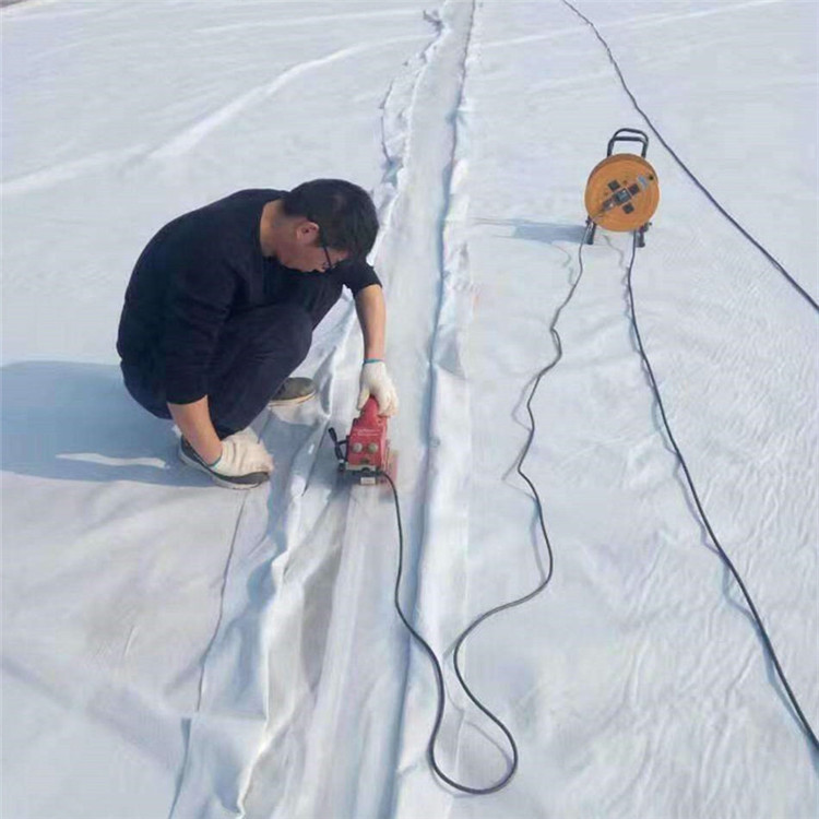 对高水头防渗.也可采用折叠法搭接,但必须与胶粘法相结合使用。搭接处重叠6层,重叠宽度15~ 20 cm,每层之间使用乳化沥青或氯丁橡胶布紧密贴合并滚压。对于没有甩边的二布一膜土工膜,采用折叠法搭接比较台适。